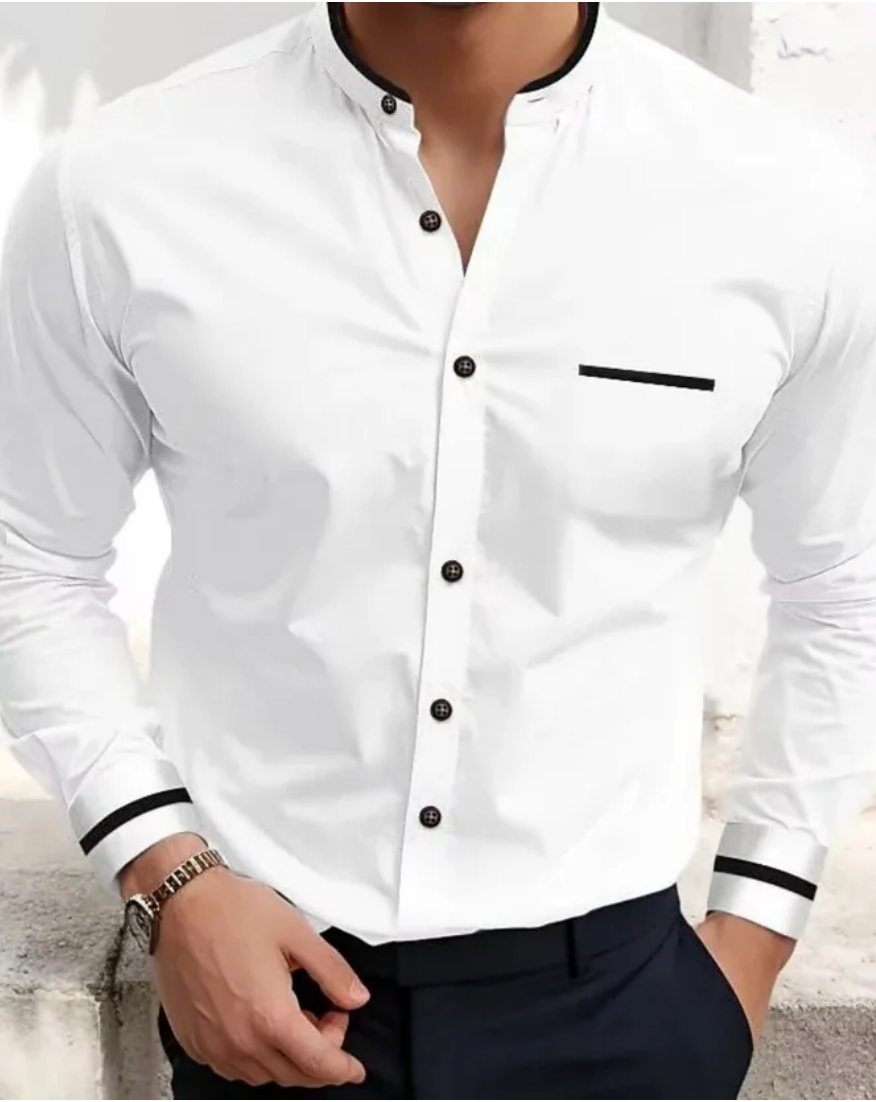 100% Polyester Loose Style Men Shirt Long Sleeve High-end Gray Light-ready Western Suit Innerwear Oversize Trendy