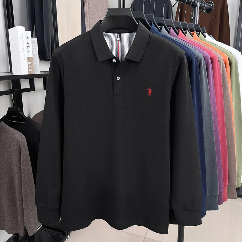 100% pure cotton high-end brand men's long sleeved polo shirt autumn fashion new luxurious pony Paul embroidery top golf T-shirt