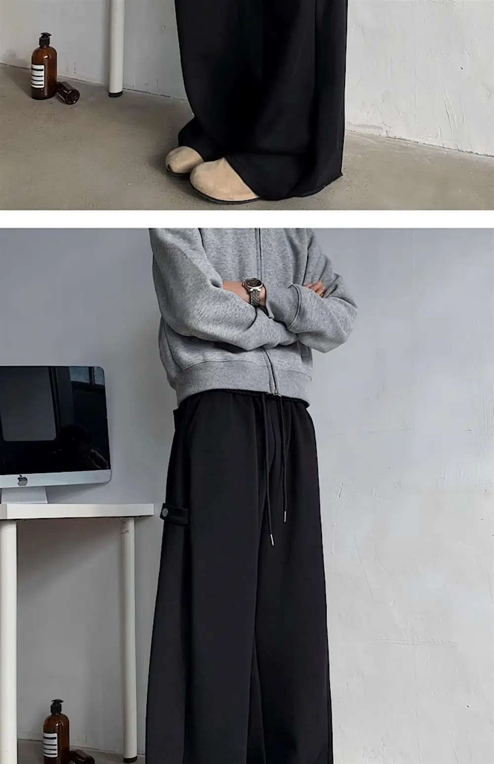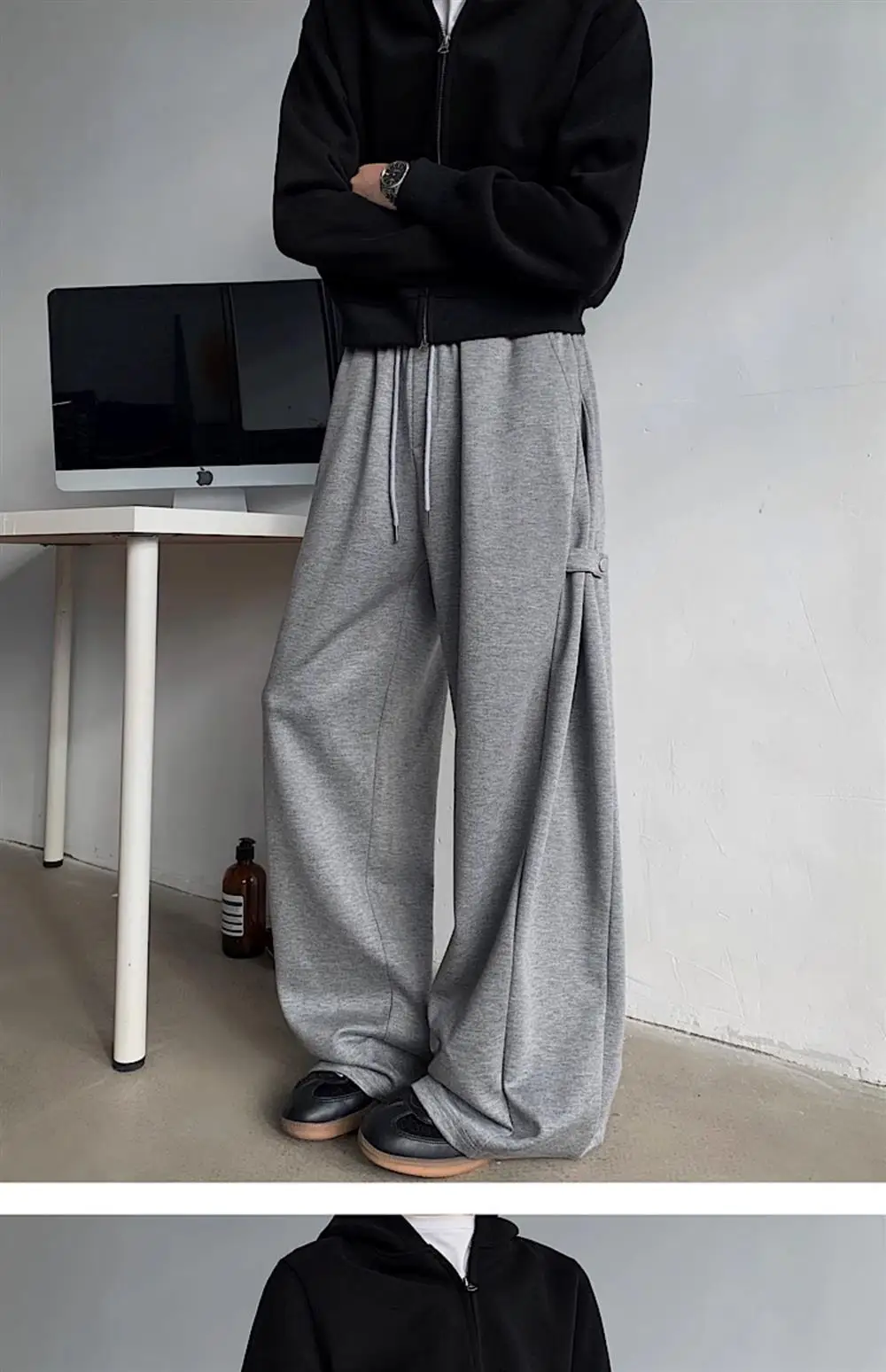 ey Deconstructed Spor Men's Sweatpants Casual Loose Wide Leg Long Trousers American Street Sle Autumn Winter Heavyweight