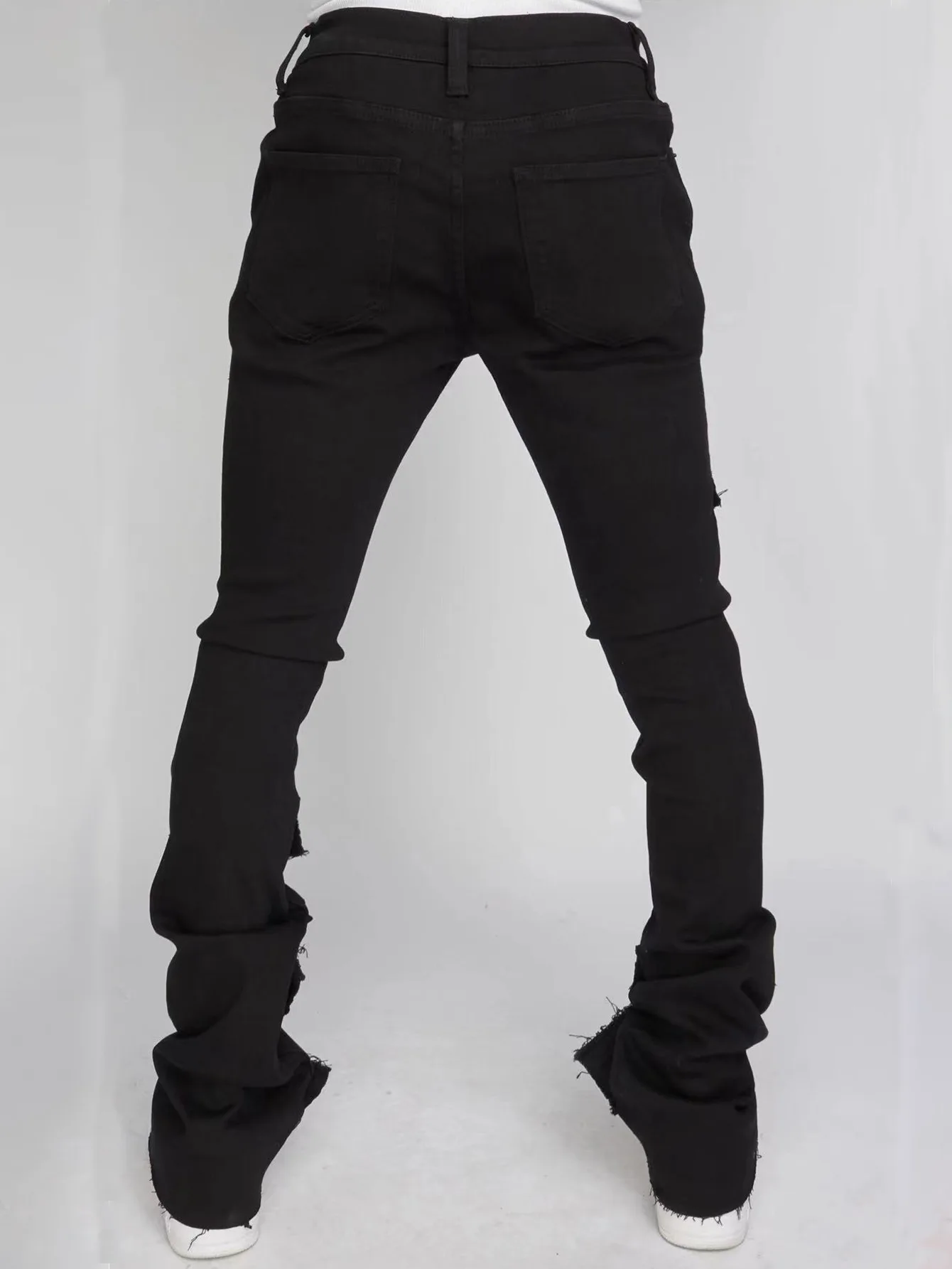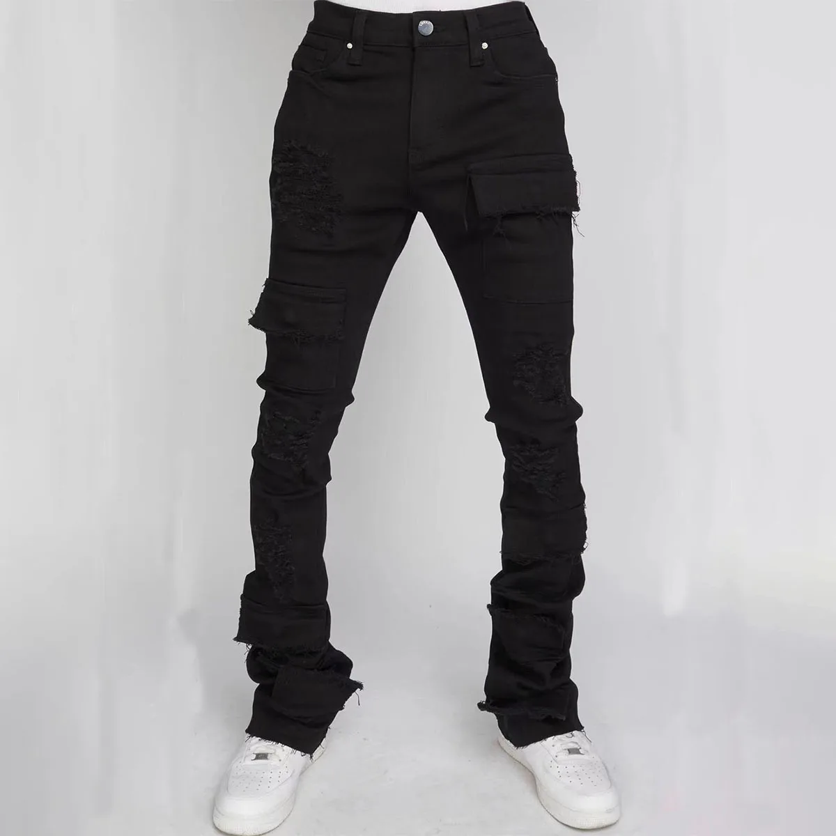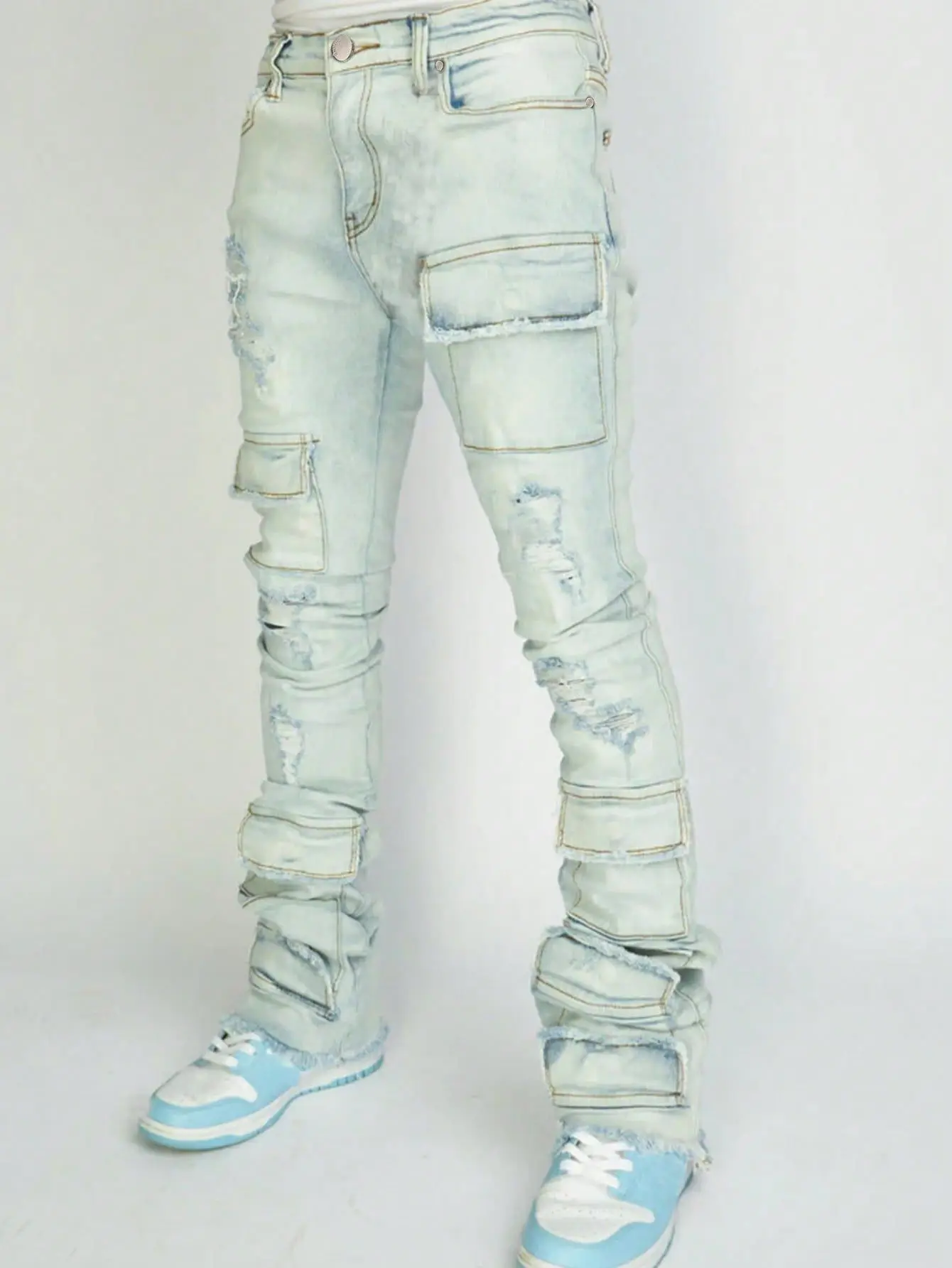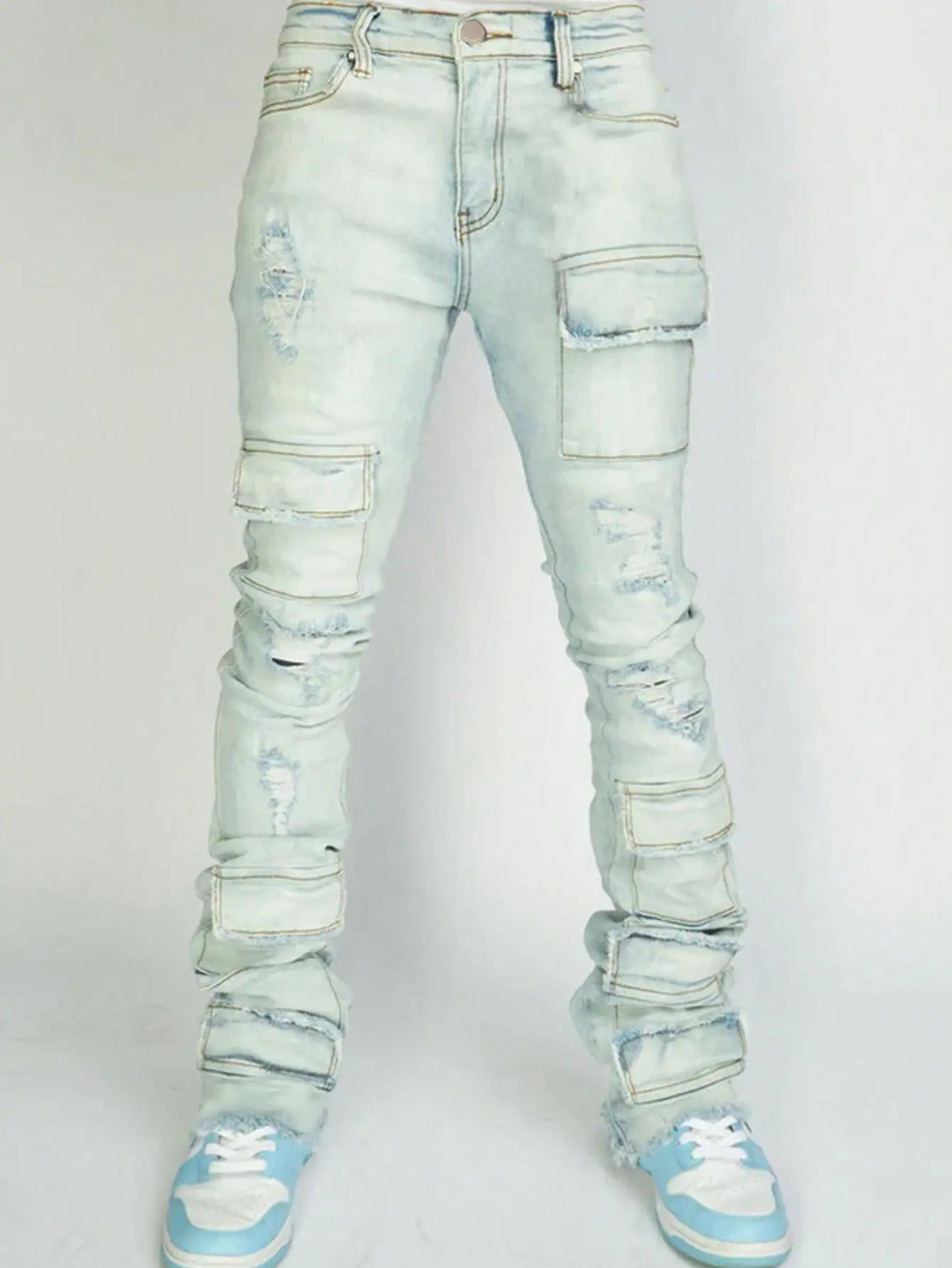 Men's Denim Pants Fashion High Street Jeans Zipper Fly American Straight Full Length Slight Strech Ripped Hole Stonewashed Jeans