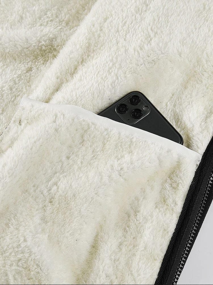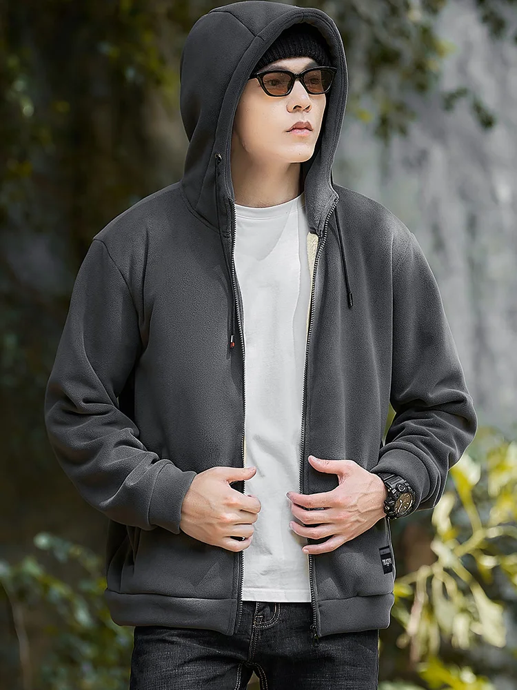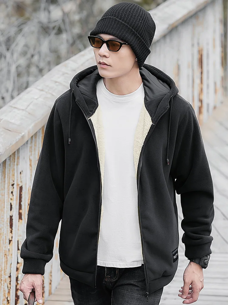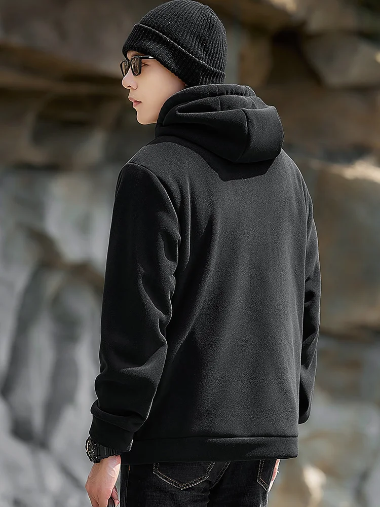 Men's Winter Fleece Jacket with Zip Pockets Classic Style Windproof Thickened Warm Hoody Coat Plus Size 6XL 7XL 8XL