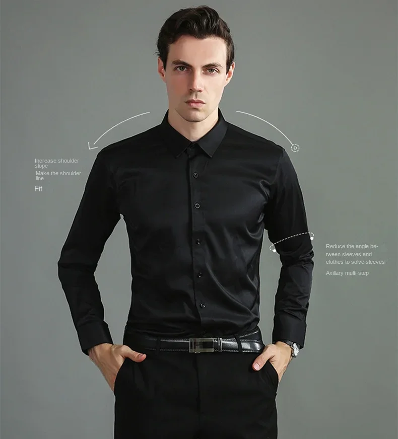 Non-iron, four-way stretch men's long sleeve shirt, silky foreign trade, cross-border amazon, euro men's tops, shirts
