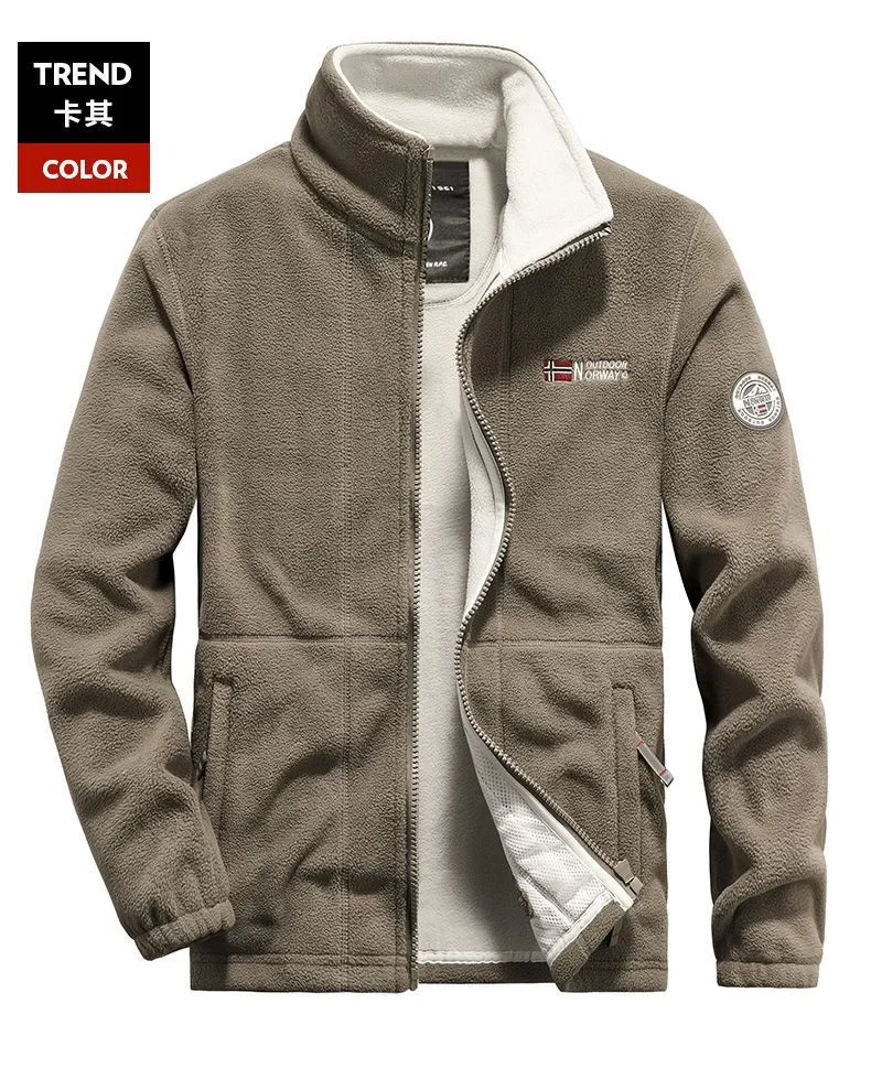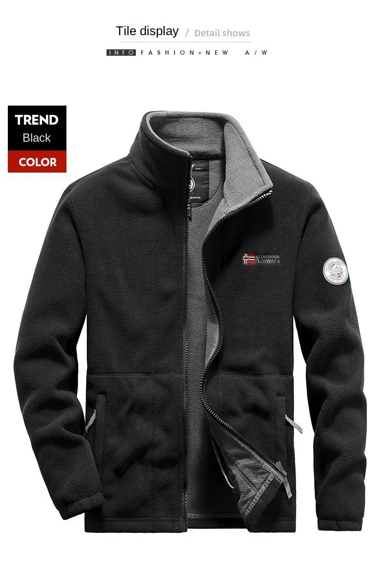Winter Warm Fleece Jacket Men's Climbing Double Thickened Pocket Jacket Outdoor High Collar Windproof Ski Sweatshirt Coat Men
